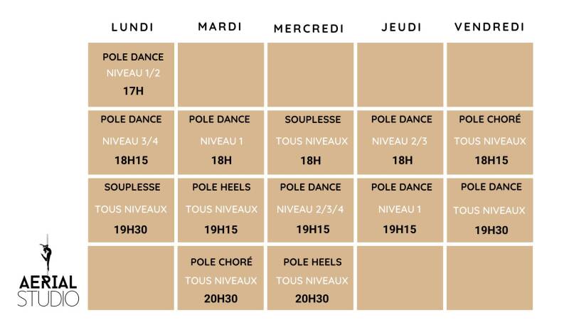 Cours soumis à un minimum d’inscriptions : Le studio se réserve le droit d’annuler un cours si moins de 4 élèves sont inscrits.